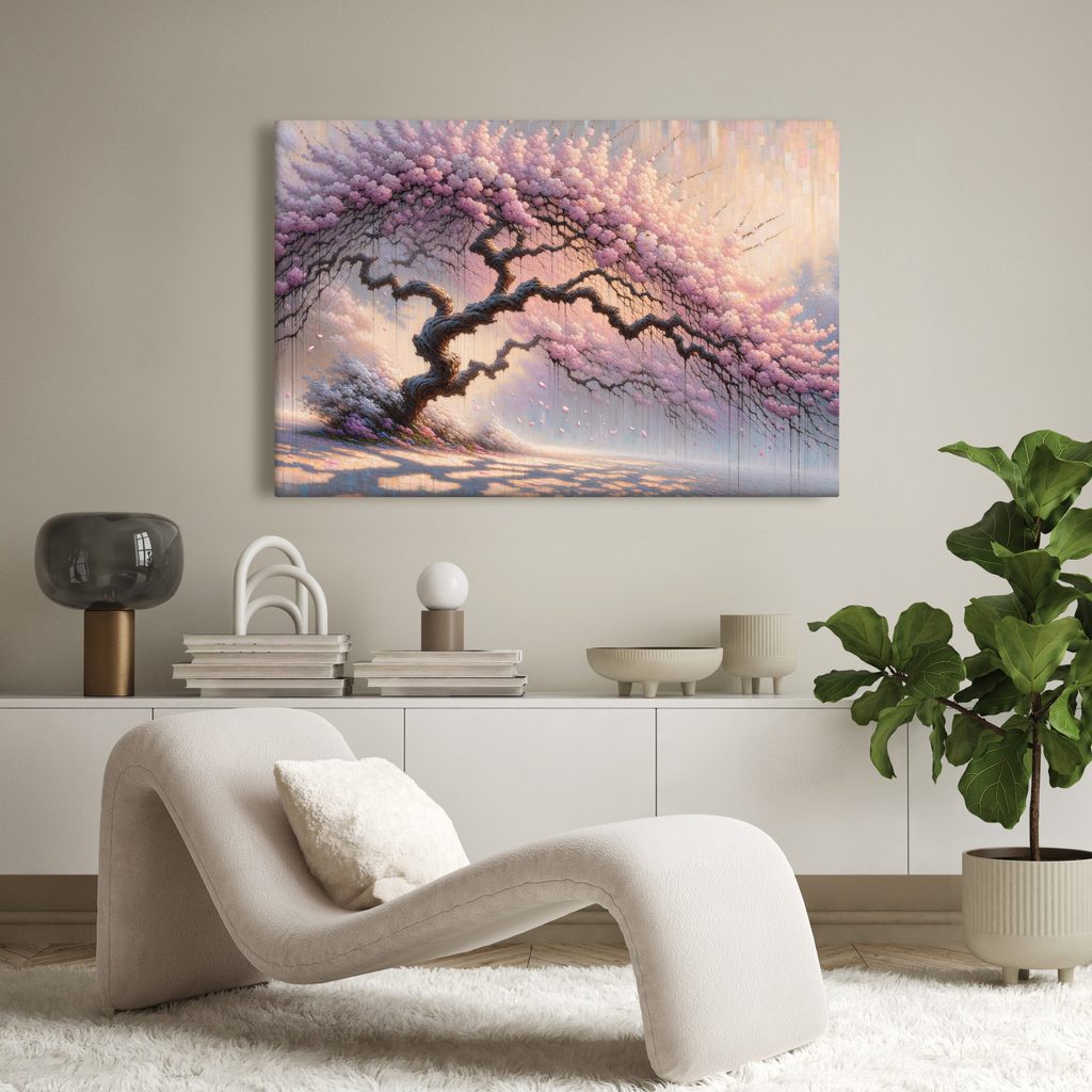 Das Wandbild zeigt einen majestätischen blühenden Lebensbaum, dessen Äste reich mit zarten rosa Blüten bedeckt sind. Die Details seines kräftigen Stammes und der anmutigen Krone schaffen eine harmonische Atmosphäre von Ruhe und Schönheit. Die Farbtöne von Rosa und Weiß in Kombination mit sanften Pastellnuancen wecken das Gefühl von Frühling und Hoffnung. Dieses Wandbild eignet sich hervorragend für Wohnräume, Büros oder als Geschenk für Naturliebhaber. Die hohe Druckqualität und die sorgfältige Verarbeitung garantieren Langlebigkeit und ein ästhetisches Erlebnis.
