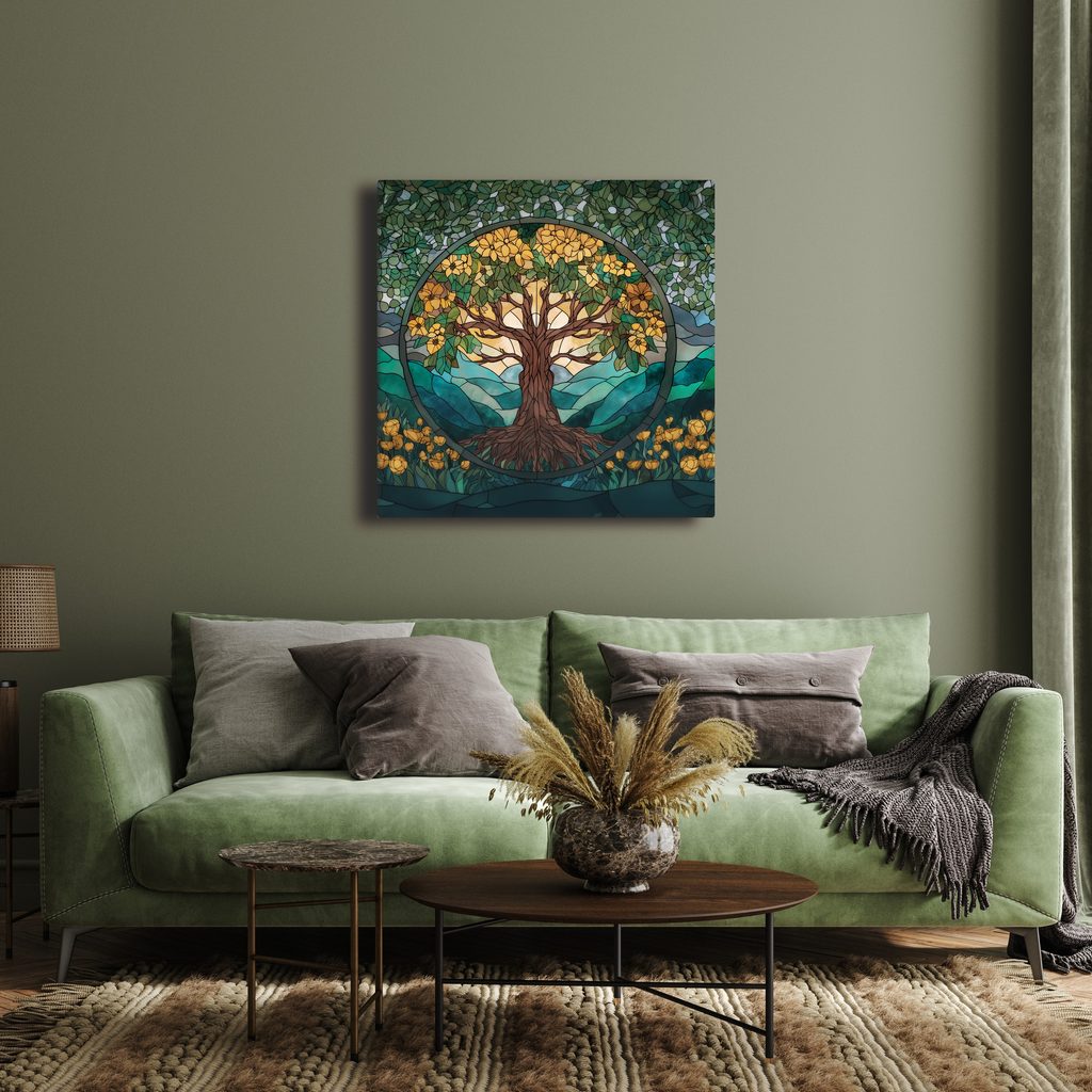 Wandbild Lebensbaum im bunten Glasfenster