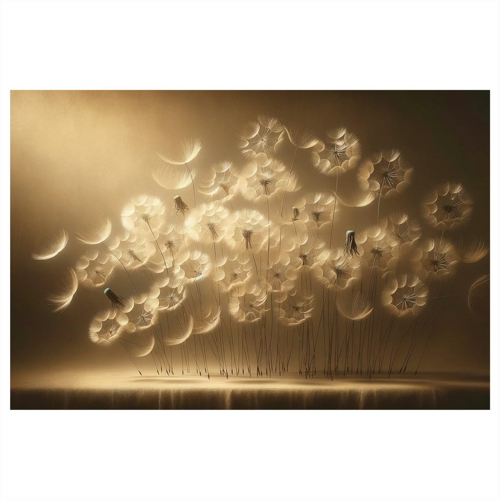 Das Wandbild von Löwenzahnen im goldenen Licht zeigt zarte Löwenzahnblüten, die eine harmonische Komposition bilden. Die Details der einzelnen Blüten werden durch weiches Licht hervorgehoben, was dem gesamten Motiv einen Hauch von Eleganz verleiht. Die warmen goldenen Töne wecken eine Atmosphäre der Ruhe und Gemütlichkeit, ideal um jeden Raum zu verschönern. Dieses Wandbild eignet sich hervorragend für das Wohnzimmer, Schlafzimmer oder Arbeitszimmer, wo es ein Gefühl von Wohlbefinden vermittelt. Hergestellt aus hochwertigen Materialien, garantiert es Langlebigkeit und eine wunderschöne Optik.