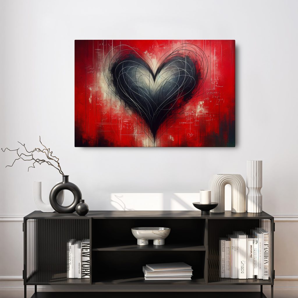 Das Wandbild eines Herzens auf rotem Hintergrund bringt ein originelles und emotionales Motiv, das sofort ins Auge fällt. Das schwarze Herz mit sanften Kurven wird von abstrakten Elementen und Text umgeben, was dem Werk Tiefe und Individualität verleiht. Der rote Hintergrund evoziert Leidenschaft und Energie und schafft so eine intensive Atmosphäre. Dieses Wandbild ist ideal, um das Interieur aufzufrischen und als Geschenk für Kunstliebhaber. Der hochwertige Druck auf Leinwand garantiert Langlebigkeit und lebendige Farben, die jeden Betrachter erfreuen werden.