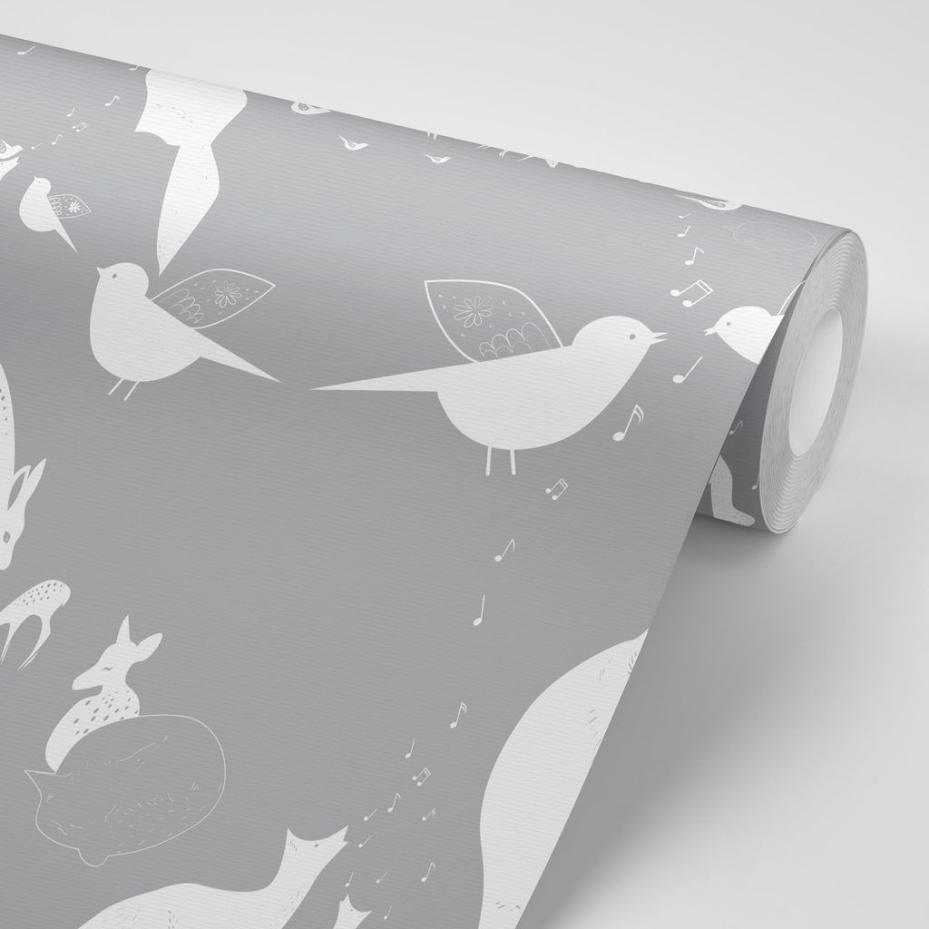 Selbstklebende Tapete mit dem Motiv einer geheimen Tierkommunikation bringt eine verspielte Atmosphäre in Ihr Interieur. Auf dem grauen Hintergrund verschmelzen weiße Silhouetten verschiedener Tiere, wie Vögel, Katzen und weitere, zu einem interessanten Muster. Dieses Design ist ideal für Naturfreunde und verleiht Ihrem Raum einen einzigartigen Stil. Die Tapete lässt sich einfach anbringen und eignet sich hervorragend für Wohnzimmer, Kinderzimmer oder Kindergärten. Das hochwertige Material garantiert eine lange Lebensdauer und eine einfache Pflege.