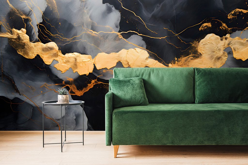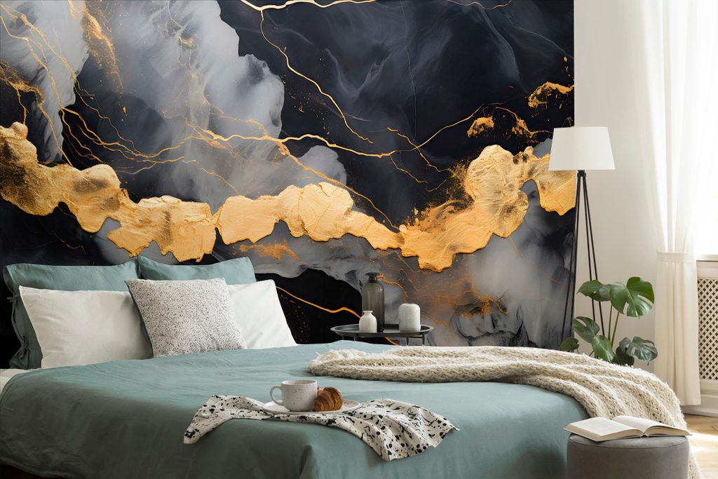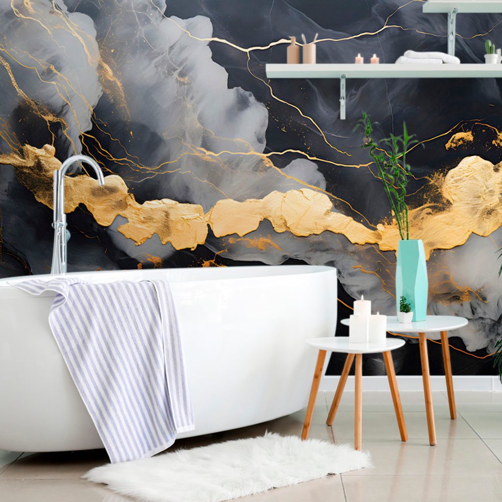 Selbstklebende Tapete mit einem Motiv aus schwarzem Marmor bringt Eleganz und Raffinesse in Ihre Räume. Der schwarze Grund wird durch feine goldene Akzente und abstrakte Muster ergänzt, die einen einzigartigen visuellen Effekt erzeugen. Die Farben kombinieren dunkle Töne mit glänzenden Details, was eine Atmosphäre von Luxus und Modernität schafft. Ideal, um Wände im Wohnzimmer, Büro oder Schlafzimmer aufzufrischen. Die Tapete besteht aus hochwertigem Material, das eine einfache Anbringung und lange Haltbarkeit gewährleistet.