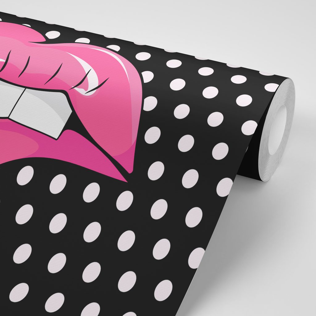 Selbstklebende Tapete mit einem Pop-Art-Motiv von rosa Lippen verleiht Ihrem Interieur einen einzigartigen und verspielten Stil. Die Lippen mit glänzender Oberfläche sind auf einem kontrastreichen schwarzen Hintergrund mit weißen Punkten platziert, was einen markanten visuellen Effekt erzeugt. Die Kombination aus Rosa und Schwarz wirkt modern und ansprechend, ideal für mutige Designer. Diese Tapete ist eine hervorragende Wahl, um Wände im Wohnzimmer, Schlafzimmer oder kreativen Raum aufzufrischen. Das hochwertige Material sorgt für eine einfache Anwendung und lange Lebensdauer, was sie zu einer praktischen und stilvollen Lösung für jeden Raum macht.