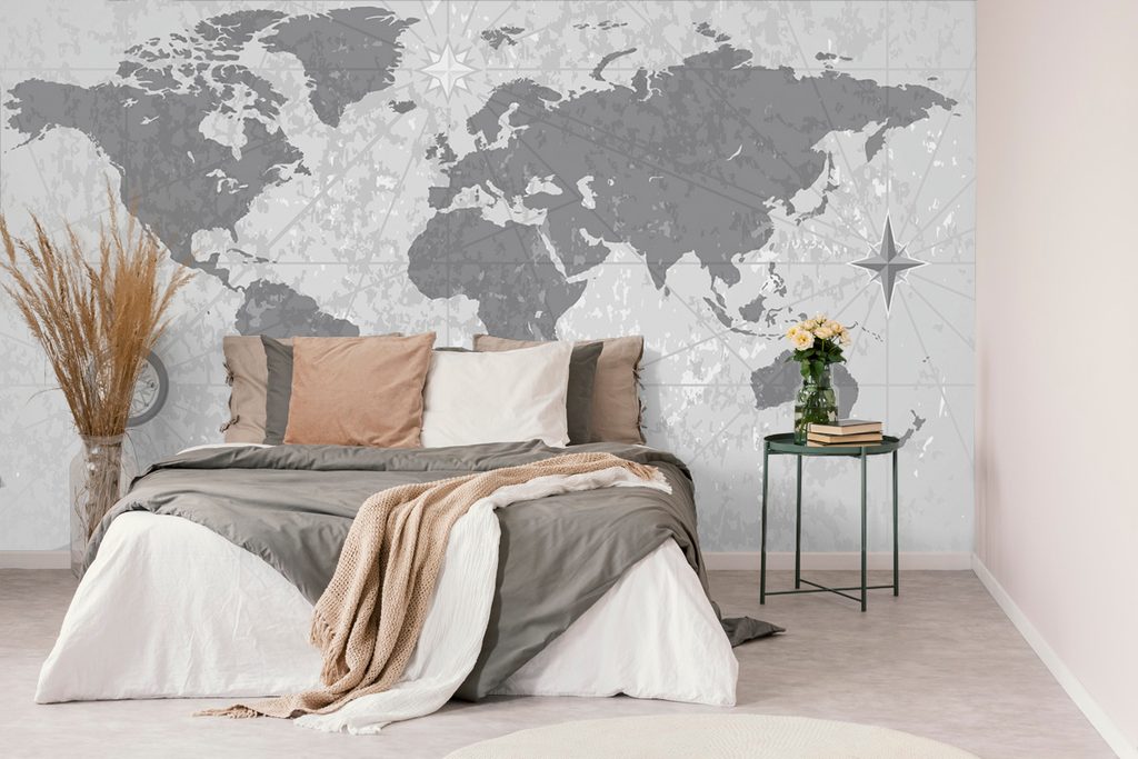 Retro schwarz-weiße Weltkarte mit stilvollem Kompass ist ein großartiges Motiv für jeden Reisefan. Die Details der Karte und des Kompasses schaffen einen einzigartigen Vintage-Look, der jeden Raum belebt. Die Farbgebung in Grautönen verleiht der Tapete eine elegante und zeitlose Atmosphäre. Ideal für Bibliotheken, Arbeitszimmer oder als interessantes Element im Wohnzimmer. Die selbstklebende Tapete ist einfach anzubringen und hochwertig verarbeitet, was eine lange Lebensdauer und einfache Pflege garantiert.
