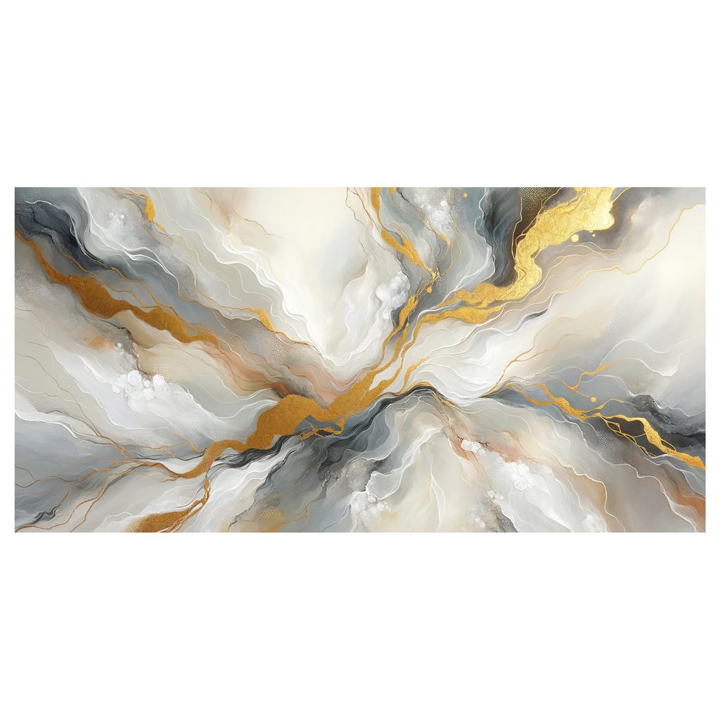 Das Wandbild mit dem Titel "Abstrakte goldene Energie" bringt eine dynamische und elegante Darstellung eines abstrakten Themas. Die Hauptmerkmale sind sanfte Wellen und goldene Akzente, die einen Eindruck von Bewegung und Lebendigkeit erzeugen. Die warmen goldenen Töne harmonieren perfekt mit kühlen Grautönen, was dem gesamten Werk eine luxuriöse Atmosphäre verleiht. Dieses Wandbild ist die ideale Wahl für moderne Interieurs, wo es einen Hauch von Stil und Eleganz verleihen kann. Die hohe Druckqualität garantiert Langlebigkeit und Farbtreue.