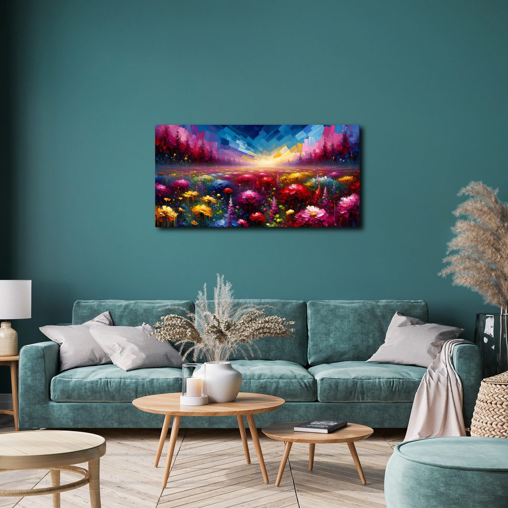Das Wandbild einer Blumenwiese bringt eine Flut von Farben und Freude in Ihren Raum. Die abgebildeten Blumen in verschiedenen Formen und Farben schaffen ein lebendiges und dynamisches Motiv, das jeden verzaubert. Die Kombination intensiver Nuancen von Rosa, Gelb und Blau verleiht der Atmosphäre ein Gefühl von Optimismus und Ruhe. Dieses Wandbild ist die ideale Wahl, um Ihr Wohnzimmer oder Ihr Arbeitszimmer aufzufrischen. Die hochwertige Verarbeitung und die Verwendung langlebiger Materialien garantieren eine lange Lebensdauer und die Schönheit jedes Details.