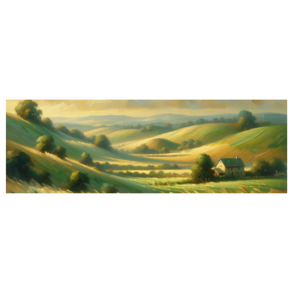 Malerische Hügel und Getreide schaffen eine harmonische Landschaft, die die Seele beruhigt. Auf dem Wandbild sind sanfte grüne Hänge zu sehen, die sich in die Ferne winden, sowie ein kleines Haus, das in die Natur eingebettet ist. Warme Gelb- und Grüntöne erzeugen eine angenehme Atmosphäre, die Ruhe und Wohlbefinden hervorrufen. Dieses 5-teiliges Wandbild ist ideal zur Verschönerung des Wohnzimmers oder des Büros und verleiht Ihrem Raum Charme und Gemütlichkeit. Der hochwertige Druck auf Leinwand garantiert eine lange Lebensdauer und ein großartiges visuelles Erlebnis.