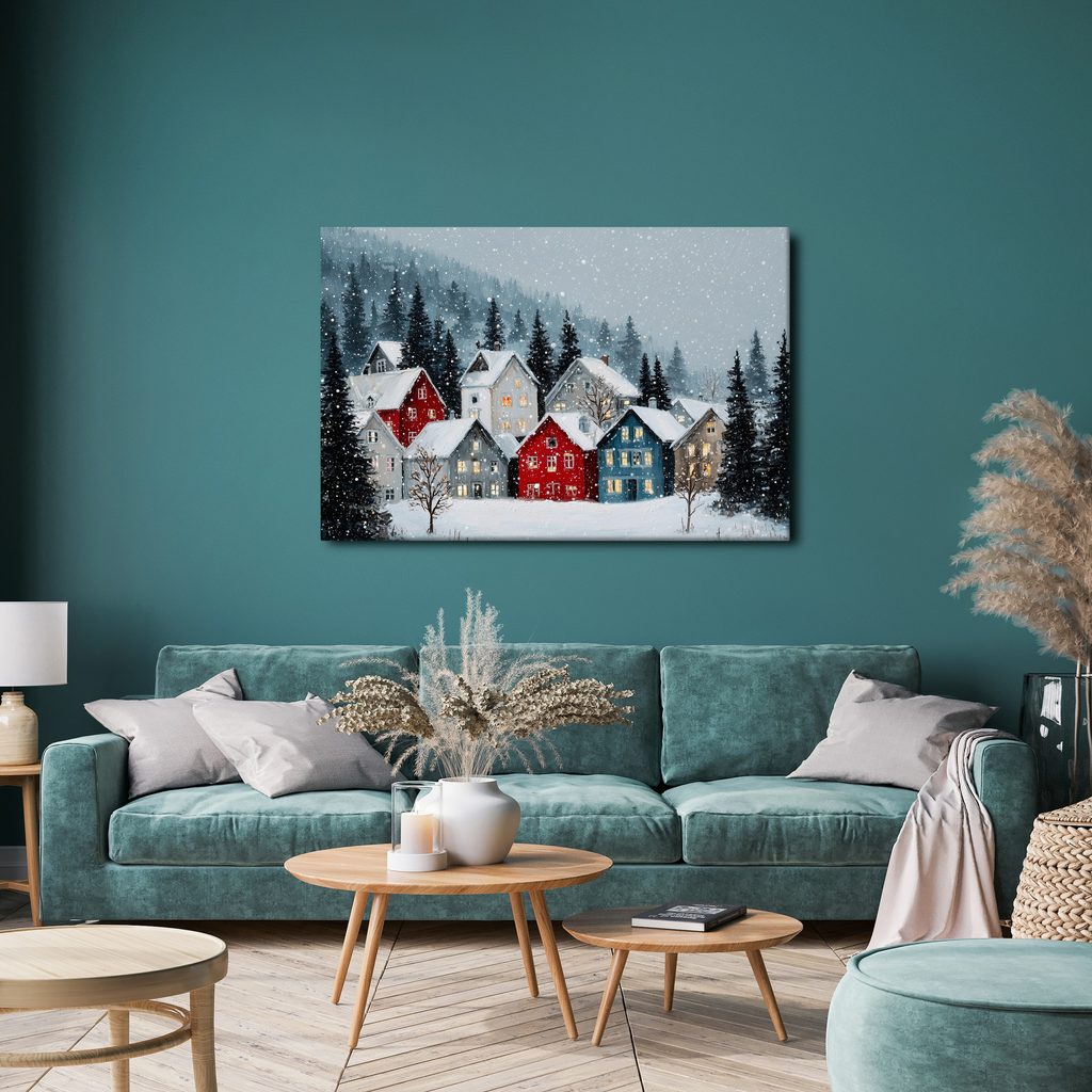 Wandbild weihnachtsdorf unter Schneedecke